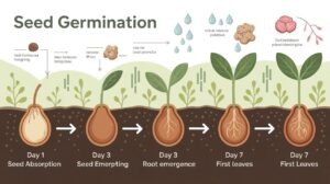 The time of germination of different plant species varies considerably. Fast-germinating seeds such as radishes and lettuce might surface within 3-7 days, but slower-growing types (like carrots or parsley) can take as long as 2-3 weeks. The speed of germination is also influenced by temperature, moisture, and the seed’s freshness.